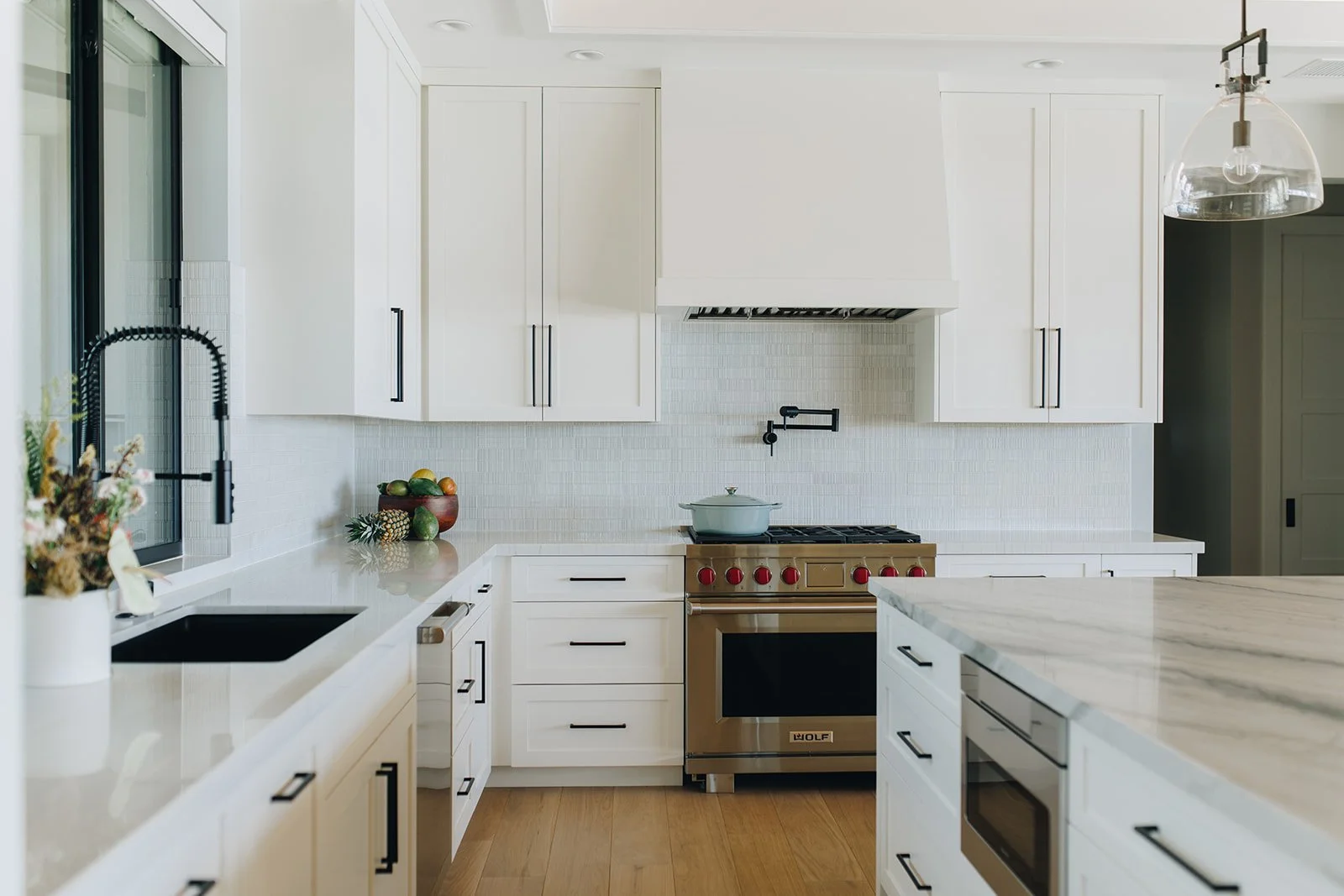 Inspired by views of Ka'anapali Beach and the nearby islands, we layered natural materials like wood, grasscloth, rattan, and stone throughout this home to embrace Maui’s relaxed, yet refined vibe. From custom cabinetry to artisan-made tile, every detail in this home was crafted to embrace the island lifestyle.
